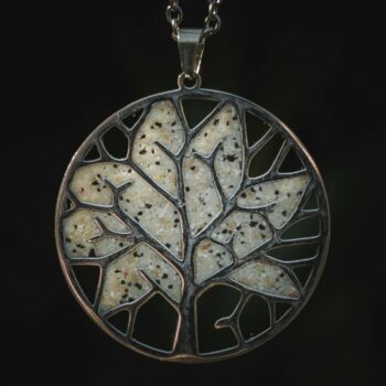 collier acier inoxydable, arbre de vie avec du sable de mayotte
