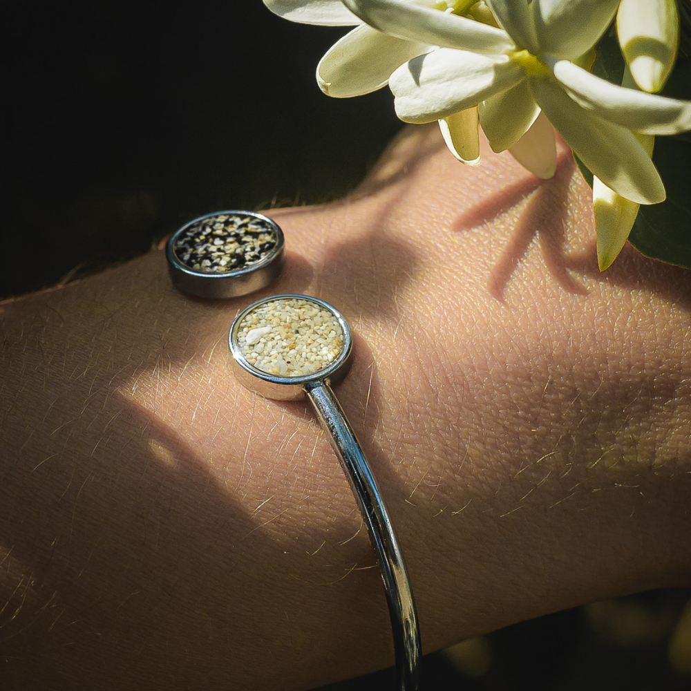 Bracelet réglable en acier inoxydable et sable des îles Choisil.