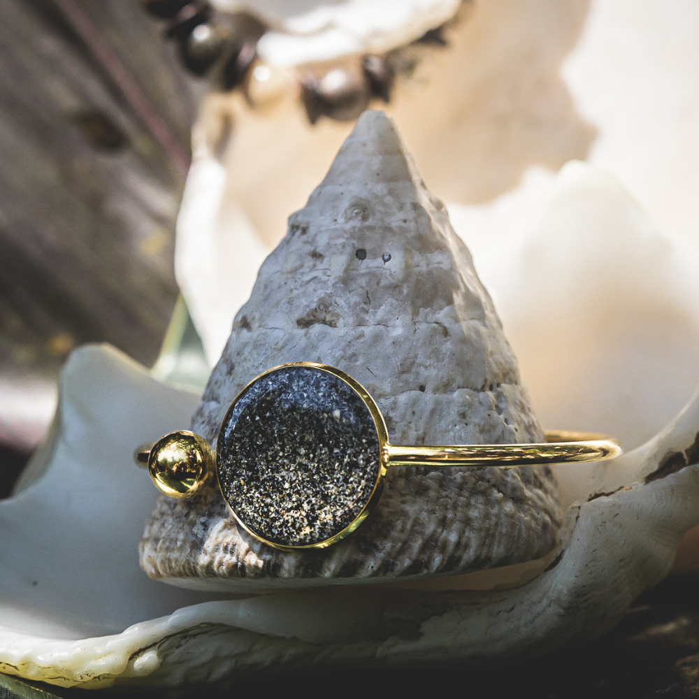 Bracelet réglable en acier inoxydable et sable de la plage de Moya.